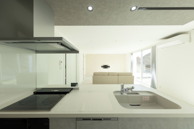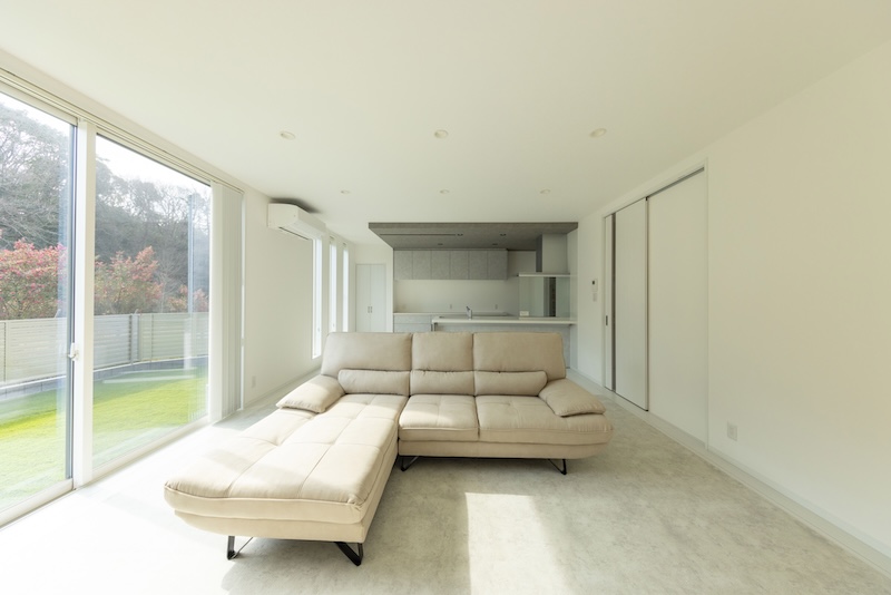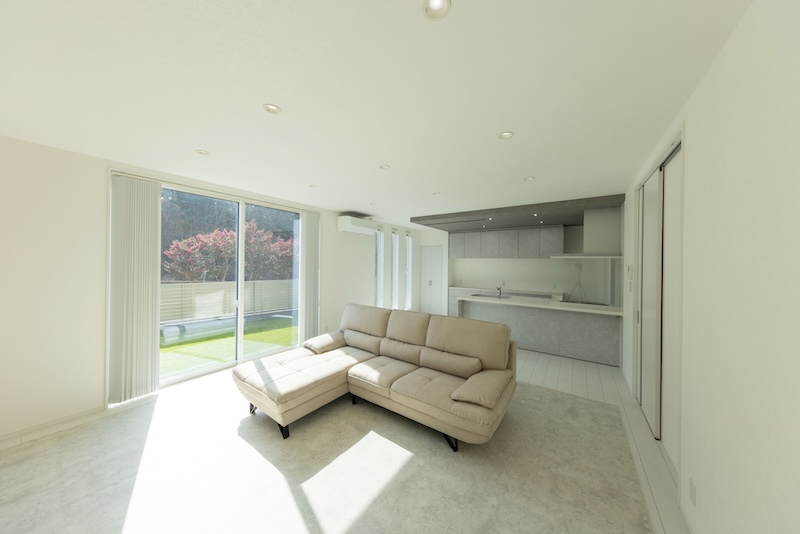 室内は、ホワイトを基調とした明るく清潔感のある空間に、たっぷり自然光が差し込む広々リビング。